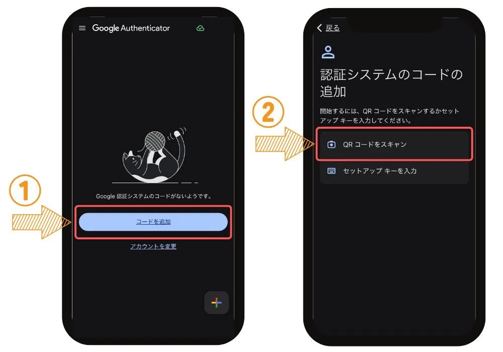 ②「QRコードをスキャン」をタップして、さきほどのQRコードを読み取る