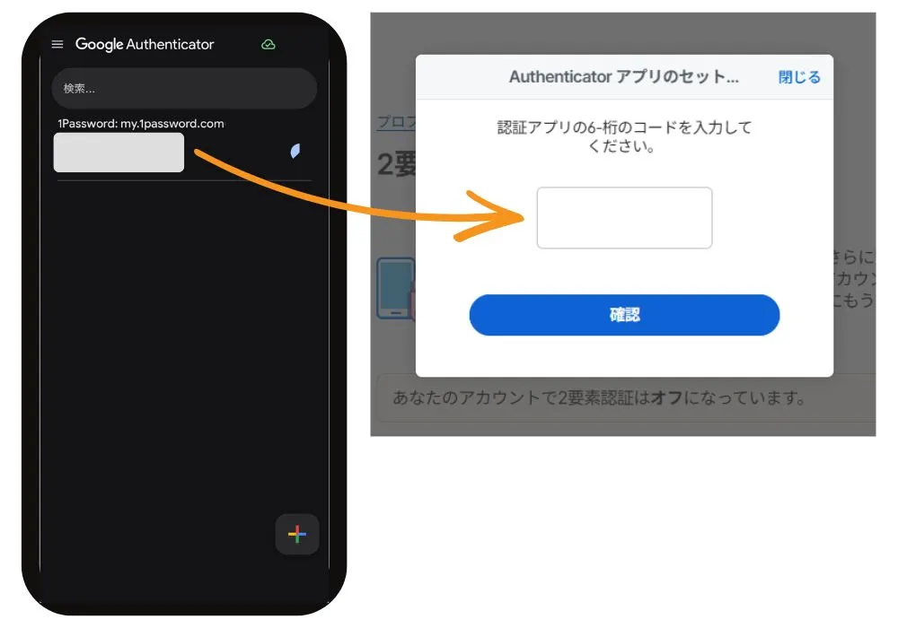 アプリで表示されている6桁のコードを入力して、認証を完了します。